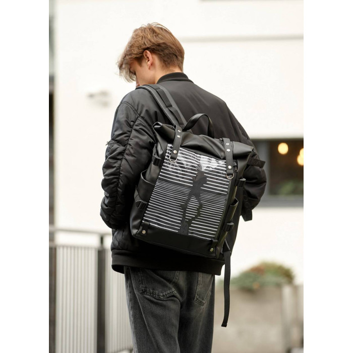 Чоловічий рюкзак Sambag RollTop Hacking чорний принт "Girl"