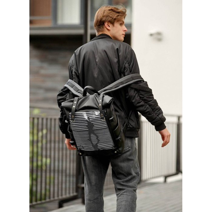 Чоловічий рюкзак Sambag RollTop Hacking чорний принт "illusion"