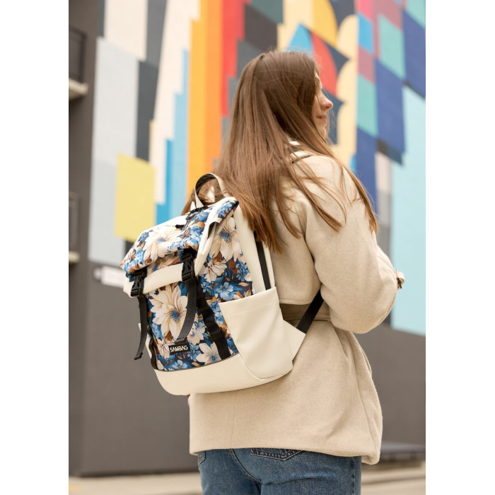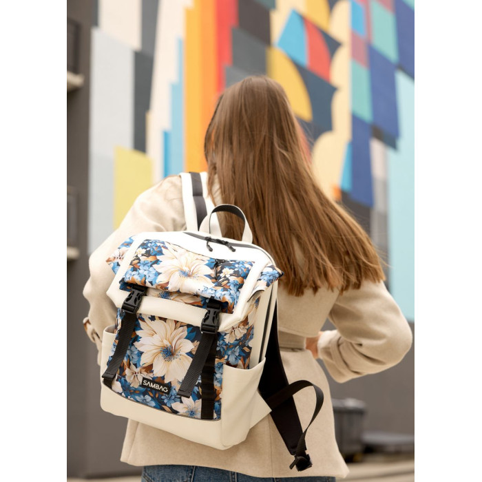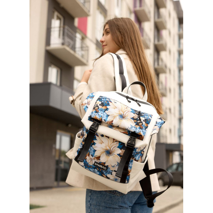 Жіночий рюкзак Aura білий з принтом Blue Flowers за вигідними цінами.