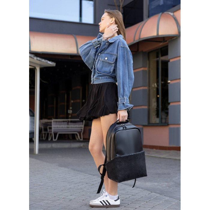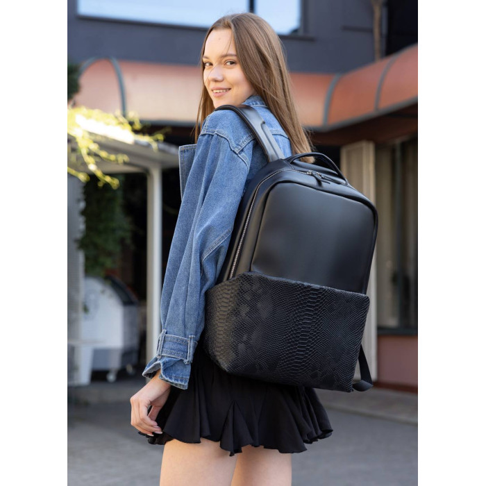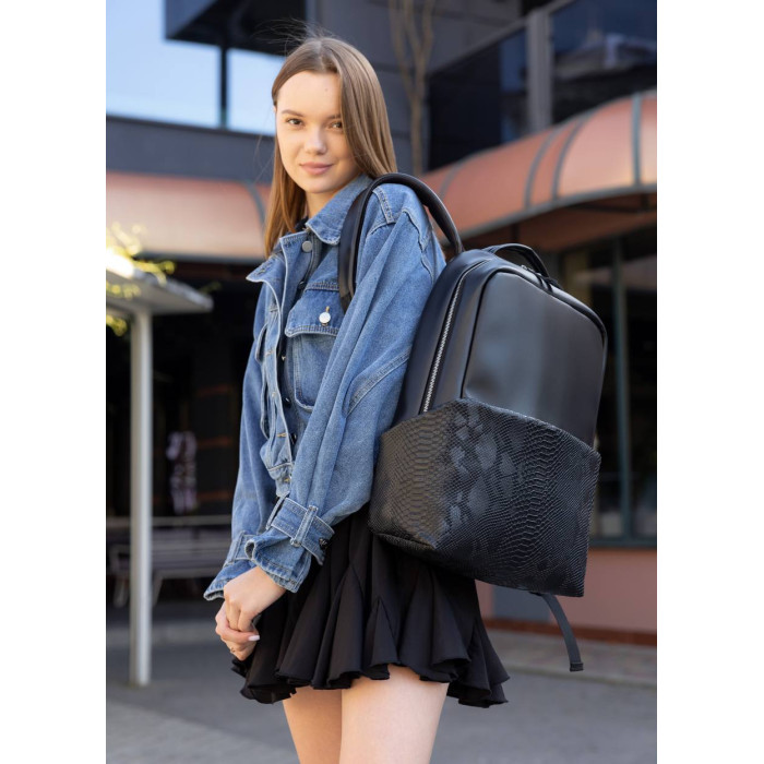 Рюкзак виготовлений з високоякісних матеріалів, які забезпечують міцність і довговічність. Верхня частина виконана з екошкіри підвищеного рівня зносостійкості.
