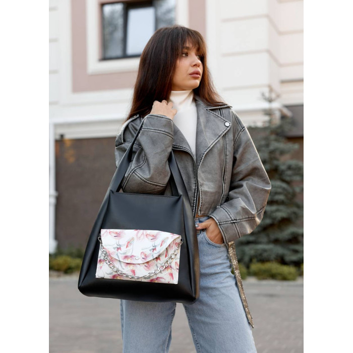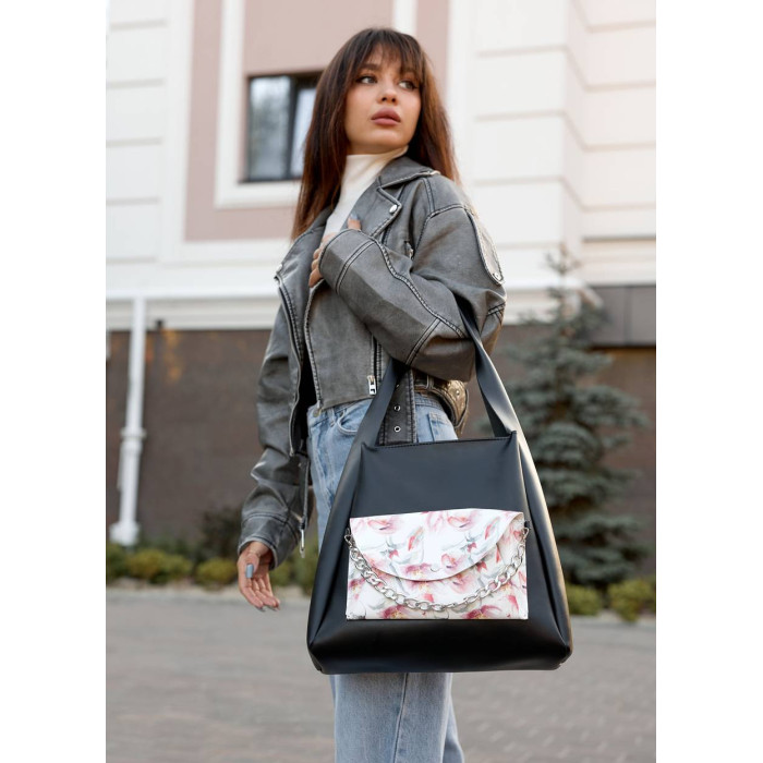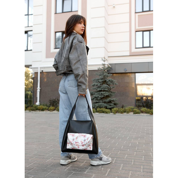 Жіноча сумка Sambag HOBO Bliss чорна принт "Flowers"