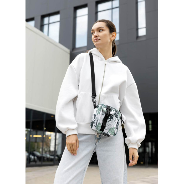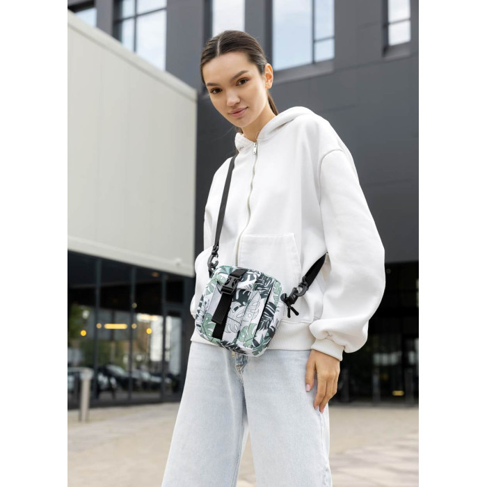 Функціональність. Всередині сумки одне велике та два окремих відділення з карабіном для ключів. З одного боку відкрита кишення, а з іншого боку кишеня на блискавці. Спереду сумки кишеня на блискавці та ще одна кишення на застібці фастекс під телефон.