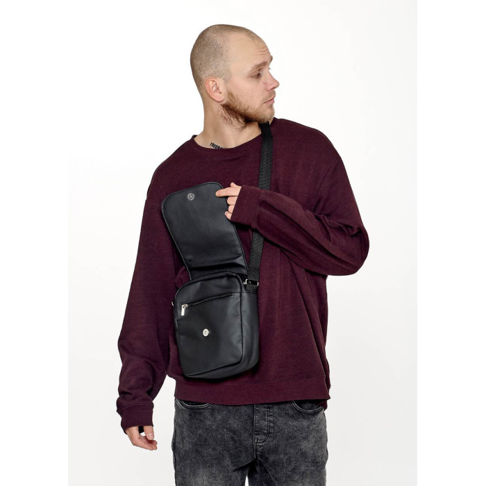 Чоловіча сумка через плече мессенджер з екошкіри Sambag Makros чорна