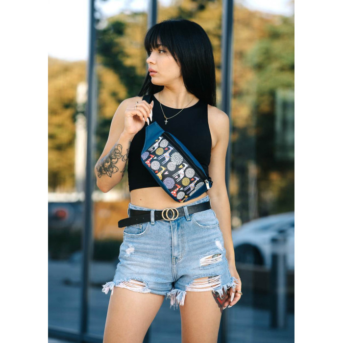 Функціоналість. Всередині сумки окреме одне відділення, яке поділене на декілька кишень. Ззовні на спинці сумки одна кишеня на блискавці. Стандартно поставляється на обхват по талії (через плече) від 86 см до 123 см: ремінь регулюється. При замовленні в коментарі зазначте необхідну довжину ременя, якщо вона відрізняється від стандартної.