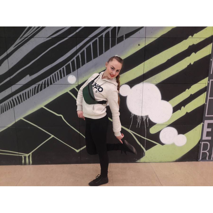 Розмір самого карману бананки 22х12х4 см, а довжина з "вушками" по боках 30,5 см. Стандартно поставляється на охват по талії (через плече) від 86 см до 123 см: ремінь регулюється.