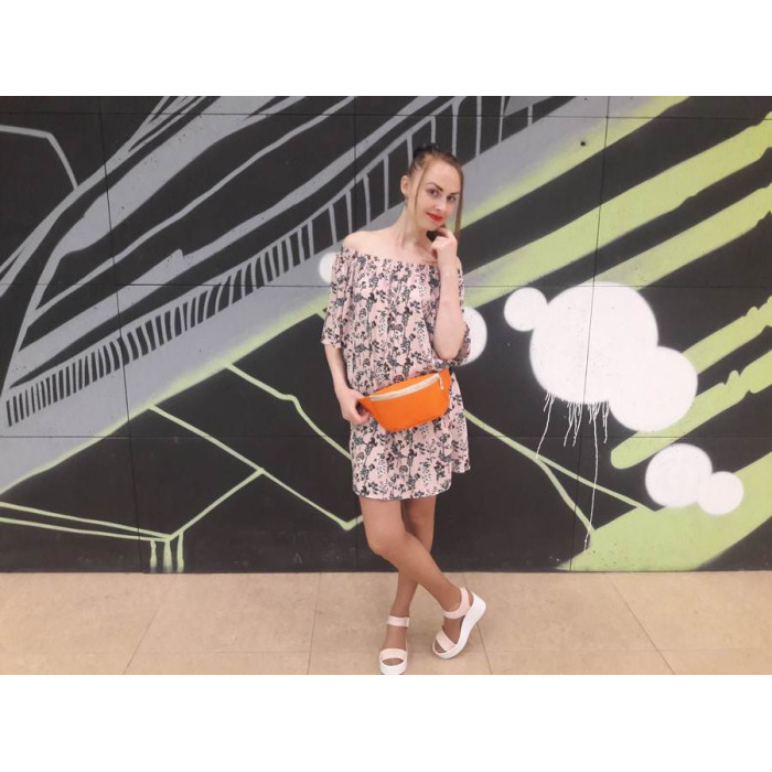 Розмір самого карману бананки 22х12х4 см, а довжина з "вушками" по боках 30,5 см. Стандартно поставляється на охват по талії (через плече) від 86 см до 123 см: ремінь регулюється.При замовленні в коментарі зазначте необхідну довжину ременя, якщо вона відрізняється від стандартної.