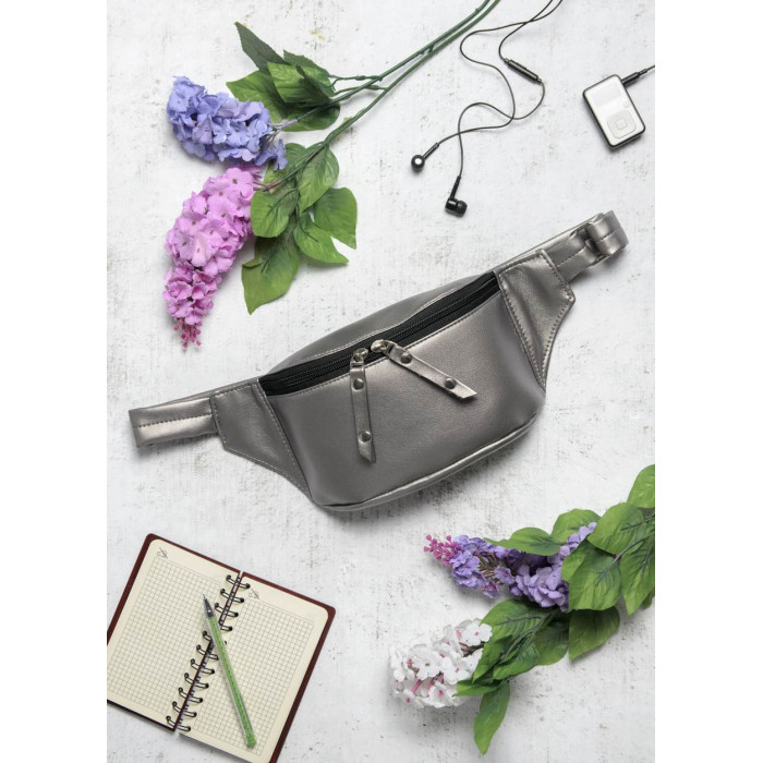 Сумка на пояс бананка Sambag Tirso MTH Металік з шкіряним ремінцем