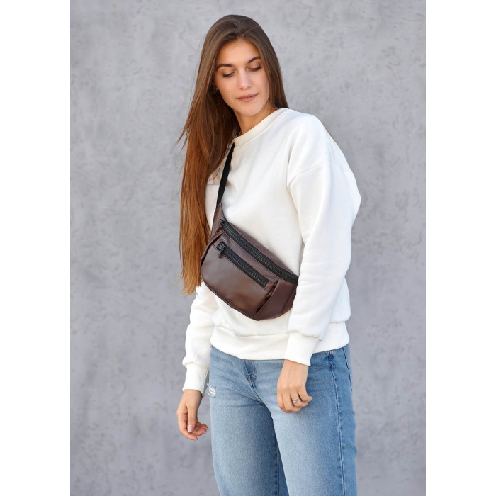 Жіноча сумка на пояс бананка Sambag Tirso Max шоколадна