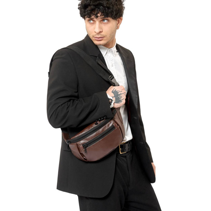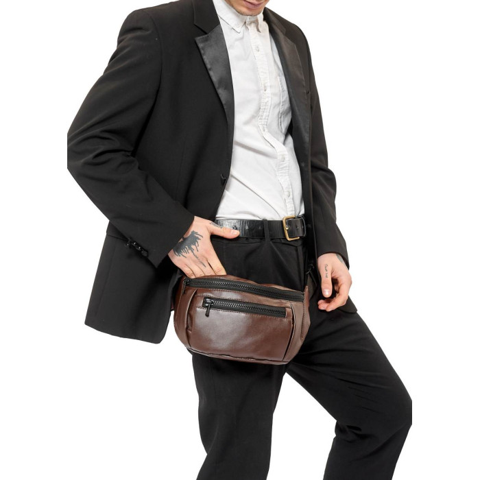 Чоловіча сумка на пояс бананка Sambag Tirso Max шоколадна