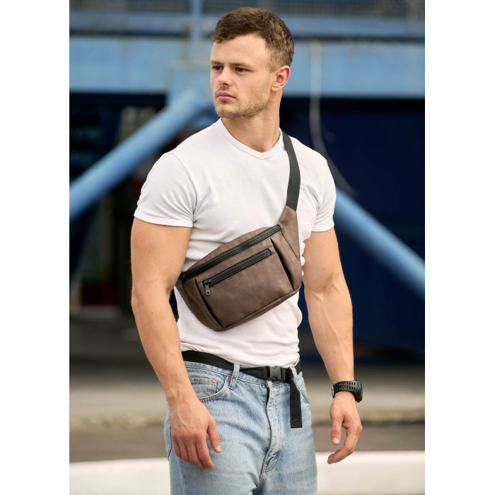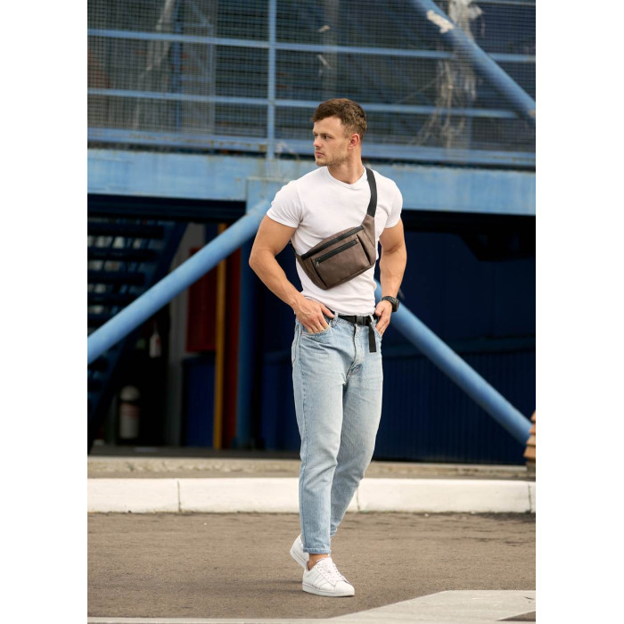 Чоловіча сумка на пояс бананка Sambag Tirso Max коричневий нубук