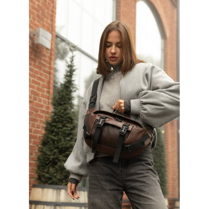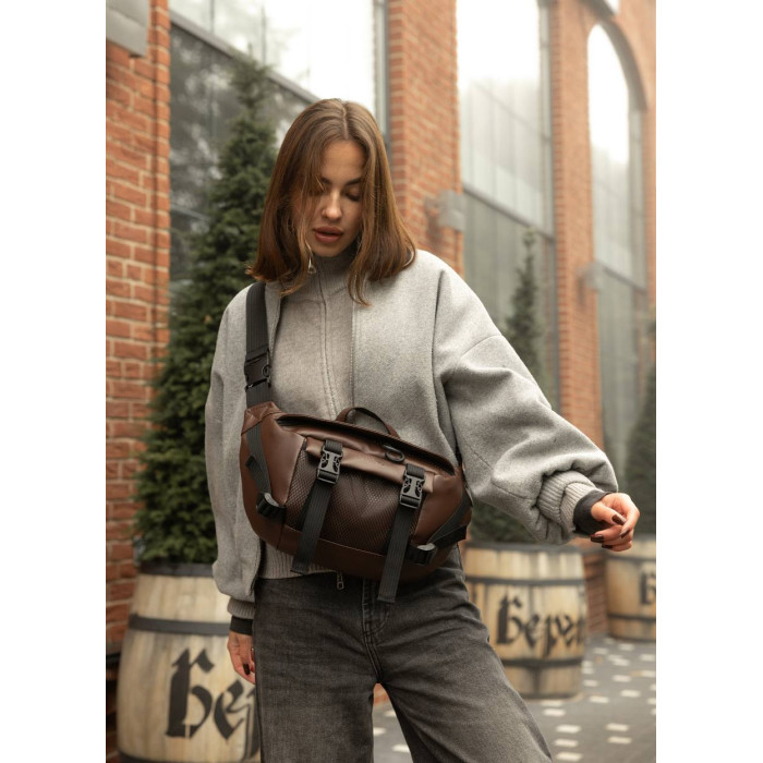 Велика жіноча поясна сумка бананка Sambag DynamicDart коричнева