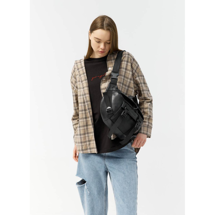 ззовні спереду сумки кишеня з сітки. Всередині сумки, окрім основного відділення, є дві відкриті кишені, одна велика кишеня на блискавці, в якій три відкритих відділення. Ззовні на спинці сумки дві відкриті кишені, куди легко поміститься телефон та інші дрібниці. Стандартний обхват (сумка з ременем) становить від 86 см до 168 см (довжина регулюється). При замовленні в коментарі зазначте необхідну довжину ременя, якщо вона відрізняється від стандартної.