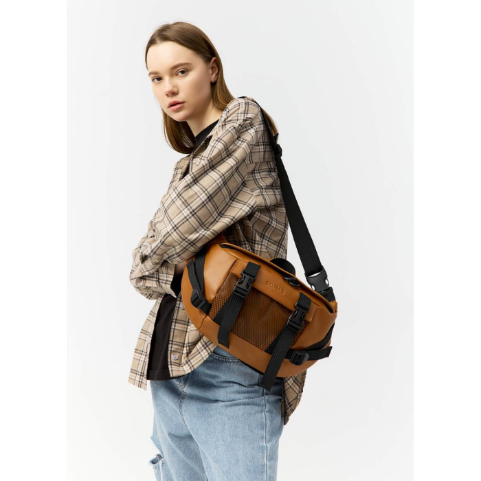 ззовні спереду сумки кишеня з сітки. Всередині сумки, окрім основного відділення, є дві відкриті кишені, одна велика кишеня на блискавці, в якій три відкритих відділення. Ззовні на спинці сумки дві відкриті кишені, куди легко поміститься телефон та інші дрібниці. Стандартний обхват (сумка з ременем) становить від 86 см до 168 см (довжина регулюється). При замовленні в коментарі зазначте необхідну довжину ременя, якщо вона відрізняється від стандартної.