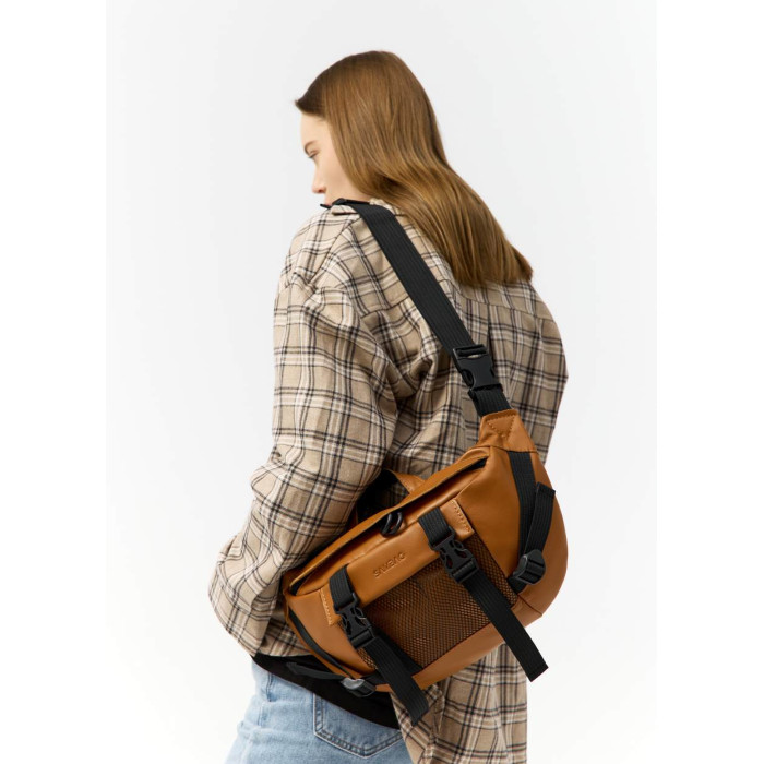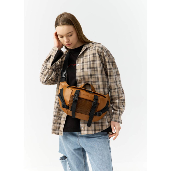Велика шкіряна жіноча поясна сумка бананка Sambag DynamicDart руда