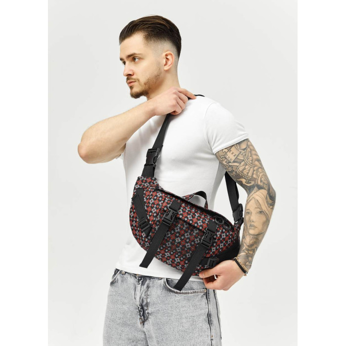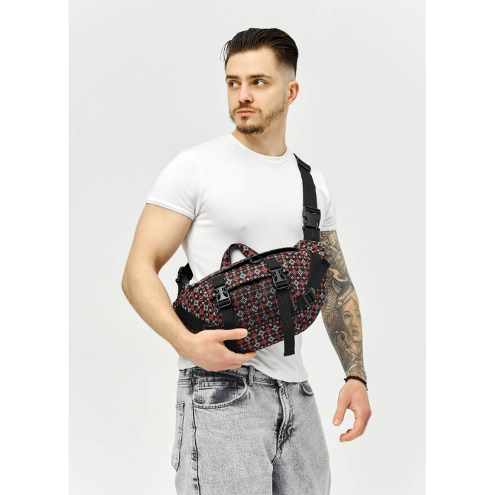 Велика чоловіча поясна сумка бананка Sambag DynamicDart тканева принт "Square"