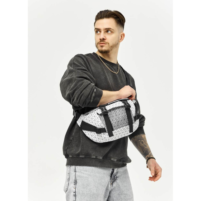 Велика чоловіча поясна сумка бананка Sambag DynamicDart тканева принт "Cube"