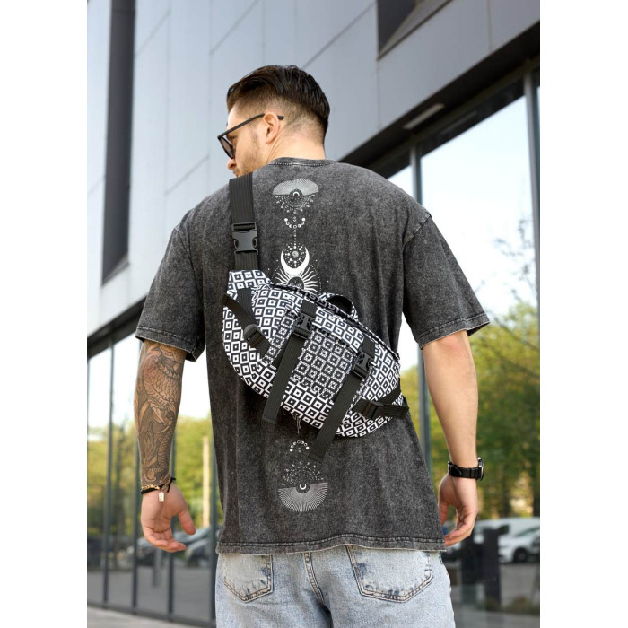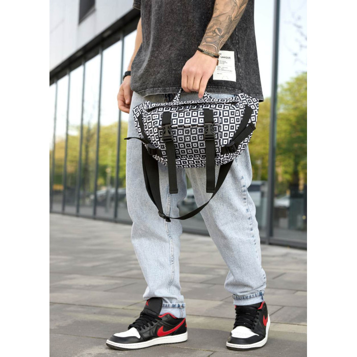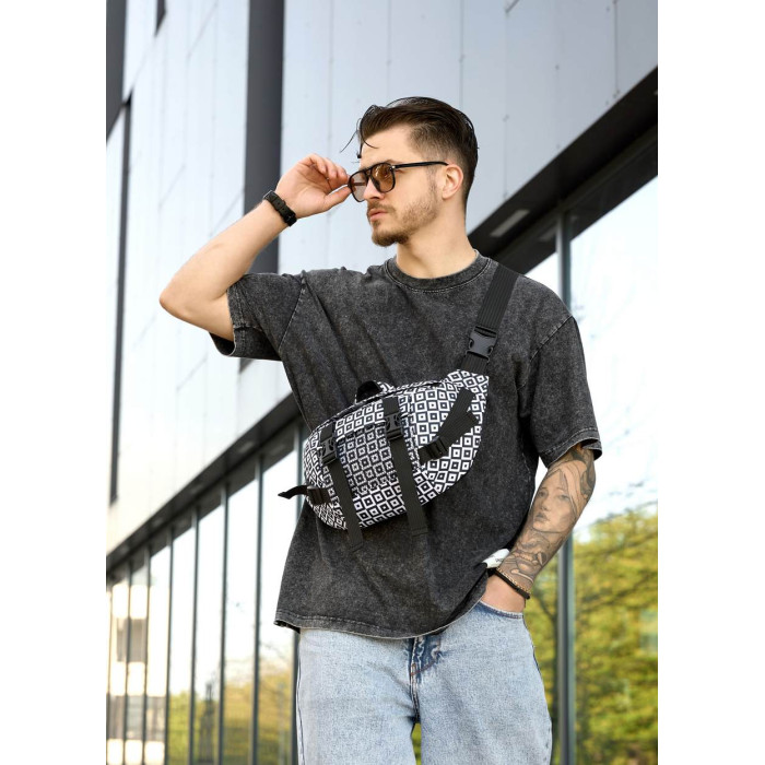 Велика чоловіча поясна сумка бананка Sambag DynamicDart тканева принт "Square"
