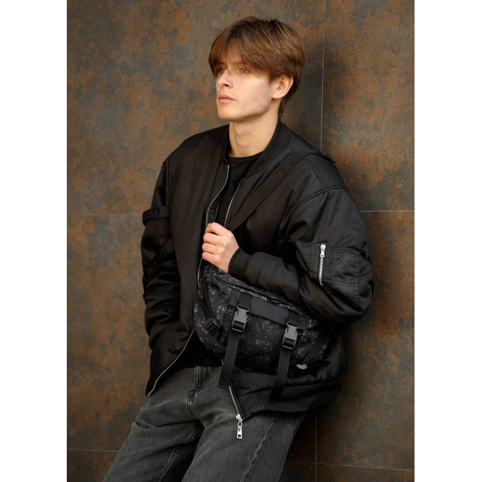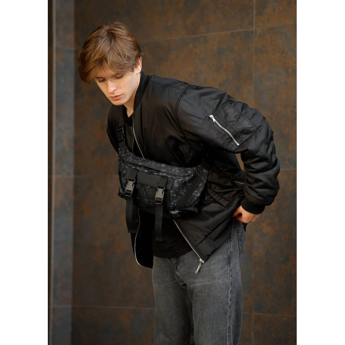 Велика чоловіча поясна сумка бананка Sambag DynamicDart чорний принт