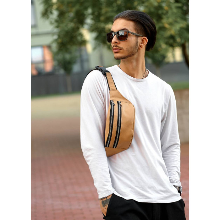Функціоналість. Ззовні спереду сумки кишеня на блискавці. Всередині сумки окреме одне відділення, яке поділене на декілька кишень. Ззовні на спинці сумки одна кишеня на блискавці. Стандартно поставляється на обхват по талії (через плече) від 86 см до 123 см: ремінь регулюється. При замовленні в коментарі зазначте необхідну довжину ременя, якщо вона відрізняється від стандартної.