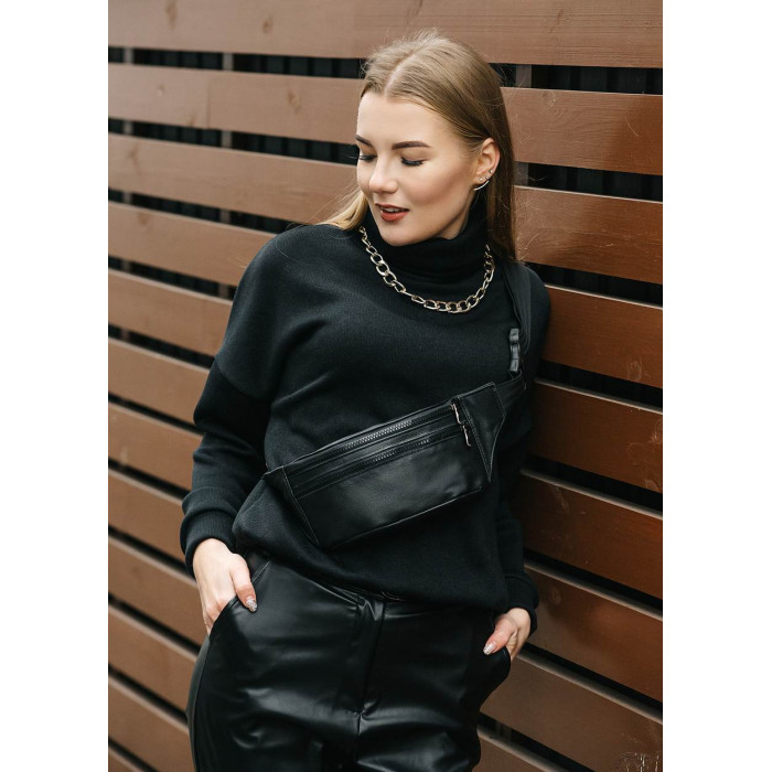 Жіноча сумка на пояс бананка шкіряна Sambag Tirso BTT чорна