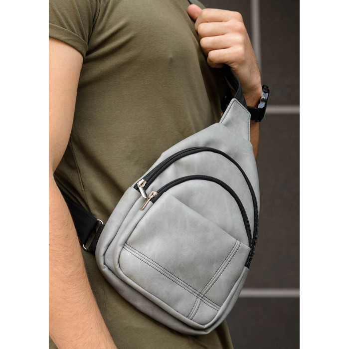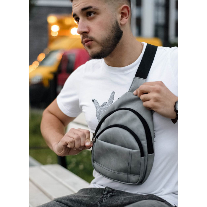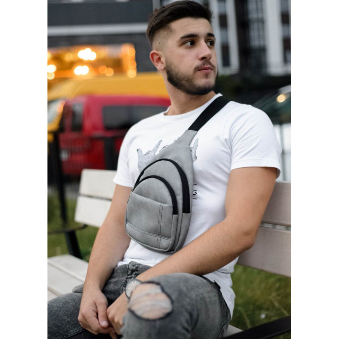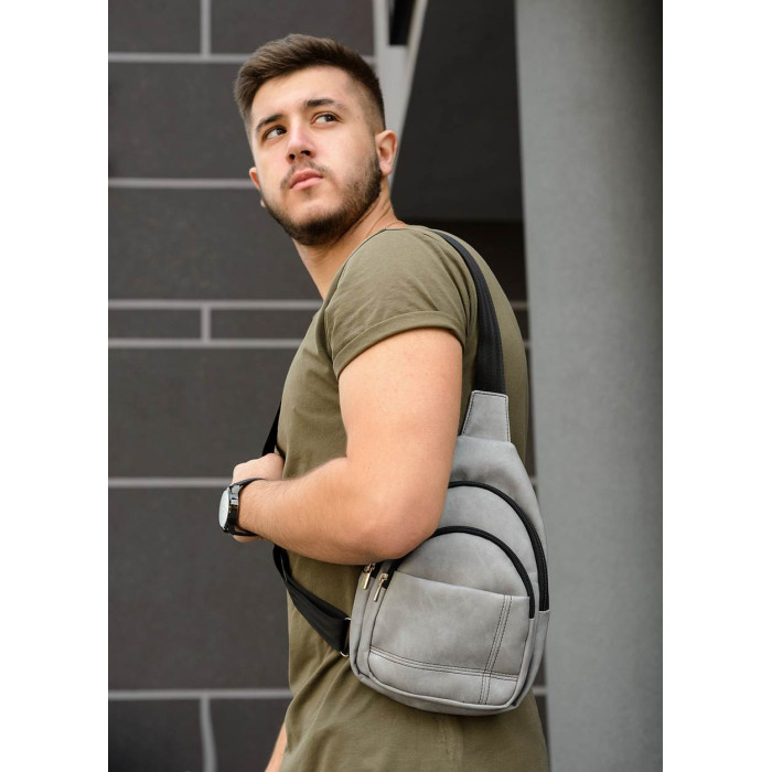 Чоловіча сумка слінг через плече Sambag Brooklyn світло-сірий нубук