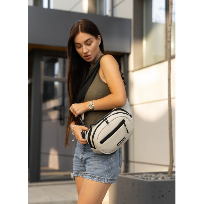 ззовні спереду сумки одна кишеня. Всередині сумки окреме одне основне відділення, кишеня на блискавці, відкрита кишеня та кишеня з сітки. Додатково має карабін для ключів. Ззовні на спинці сумки одна кишеня на блискавці. Спинка - вентиляційна, виконана з Air Mesh 3D. Стандартно поставляється на обхват по талії (через плече) від 86 см до 160 см: ремінь регулюється. При замовленні в коментарі зазначте необхідну довжину ременя, якщо вона відрізняється від стандартної.