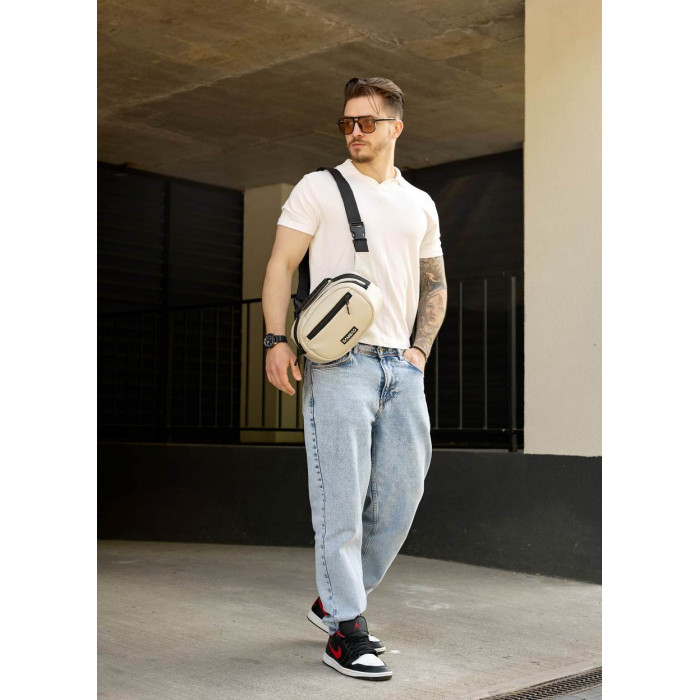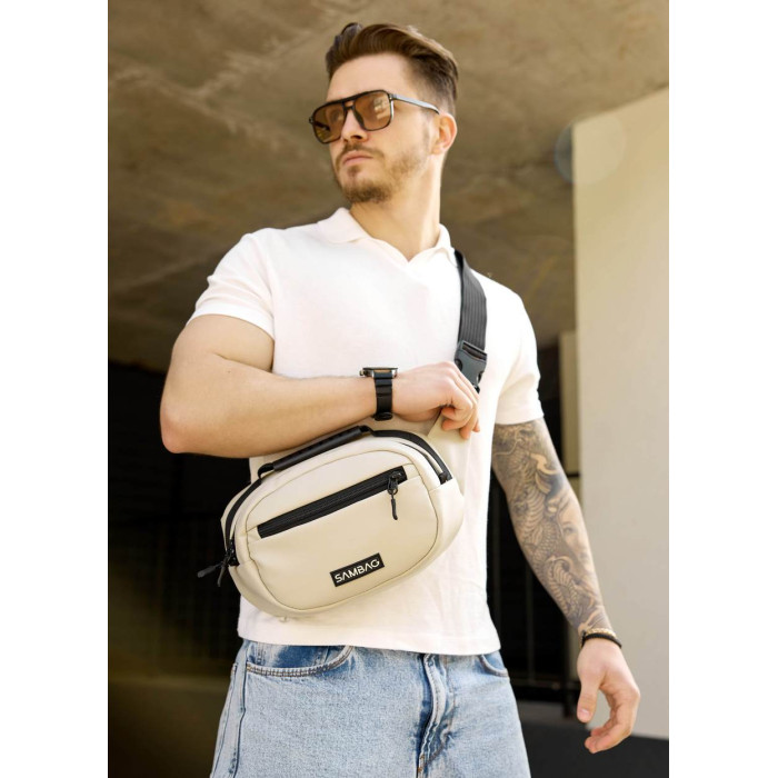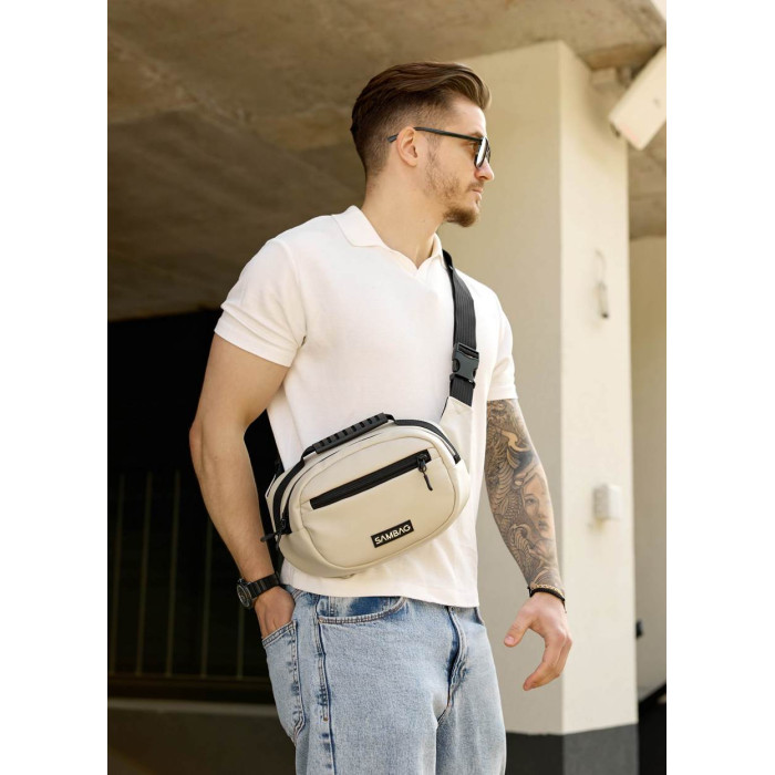 ззовні спереду сумки одна кишеня. Всередині сумки окреме одне основне відділення, кишеня на блискавці, відкрита кишеня та кишеня з сітки. Додатково має карабін для ключів. Ззовні на спинці сумки одна кишеня на блискавці. Спинка - вентиляційна, виконана з Air Mesh 3D. Стандартно поставляється на обхват по талії (через плече) від 86 см до 160 см: ремінь регулюється. При замовленні в коментарі зазначте необхідну довжину ременя, якщо вона відрізняється від стандартної.