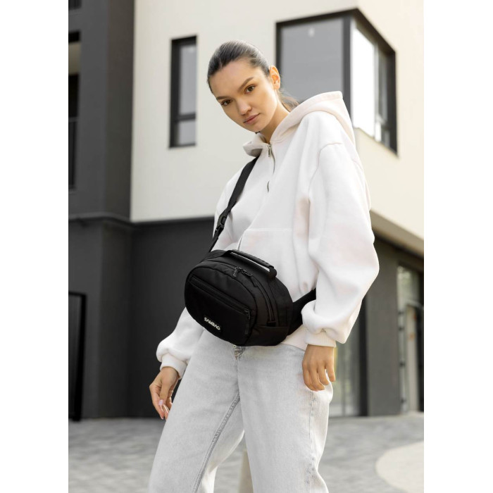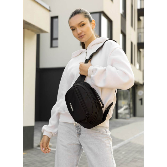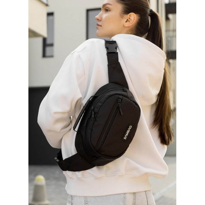 ззовні спереду сумки одна кишеня. Всередині сумки окреме одне основне відділення, кишеня на блискавці, відкрита кишеня та кишеня з сітки. Додатково має карабін для ключів. Ззовні на спинці сумки одна кишеня на блискавці. Спинка - вентиляційна, виконана з Air Mesh 3D. Стандартно поставляється на обхват по талії (через плече) від 86 см до 160 см: ремінь регулюється. При замовленні в коментарі зазначте необхідну довжину ременя, якщо вона відрізняється від стандартної.