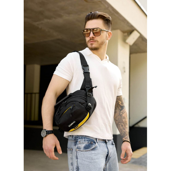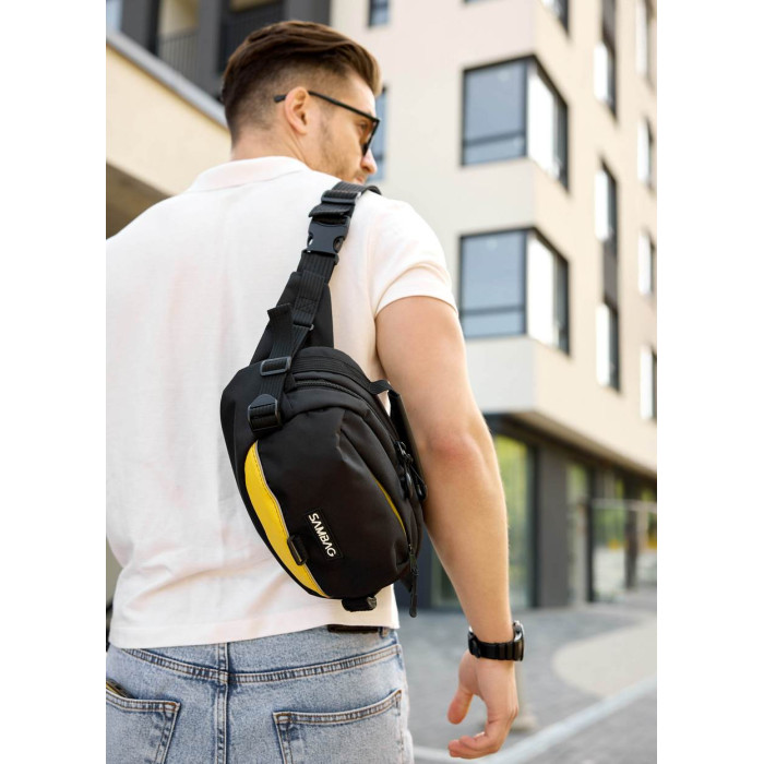 ззовні спереду сумки одна об'ємна кишеня на блискавці. Всередині сумки — окреме основне відділення, кишеня на блискавці, відкрита кишеня та кишеня з сітки. Додатково має карабін для ключів. Ззовні на спинці сумки одна кишеня на блискавці. Спинка - вентиляційна, виконана з Air Mesh 3D. З боків додаткові регулятори об'єму бананки. Стандартно поставляється на обхват по талії (через плече) від 86 см до 160 см: ремінь регулюється. При замовленні в коментарі зазначте необхідну довжину ременя, якщо вона відрізняється від стандартної.