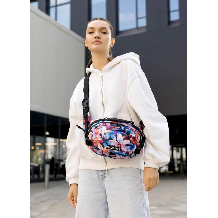 ззовні спереду сумки одна об'ємна кишеня на блискавці. Всередині сумки — окреме основне відділення, кишеня на блискавці, відкрита кишеня та кишеня з сітки. Додатково має карабін для ключів. Ззовні на спинці сумки одна кишеня на блискавці. Спинка - вентиляційна, виконана з Air Mesh 3D. З боків додаткові регулятори об'єму бананки. Стандартно поставляється на обхват по талії (через плече) від 86 см до 160 см: ремінь регулюється. При замовленні в коментарі зазначте необхідну довжину ременя, якщо вона відрізняється від стандартної.