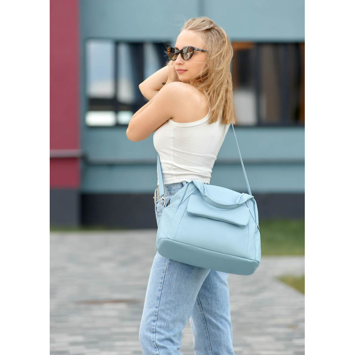 Функціоналість. Ззовні спереду сумки кишеня на магніті. Всередині сумки окреме одне відділення, в якому одна кишення на блискавці та одина відкрита кишеня. Ззовні на спинці сумки одна кишеня на блискавці.