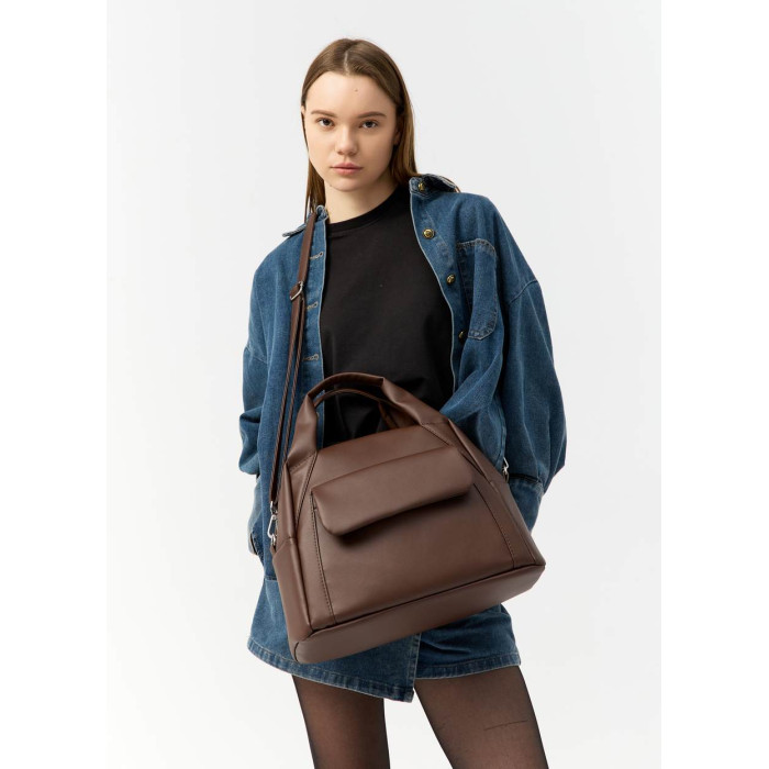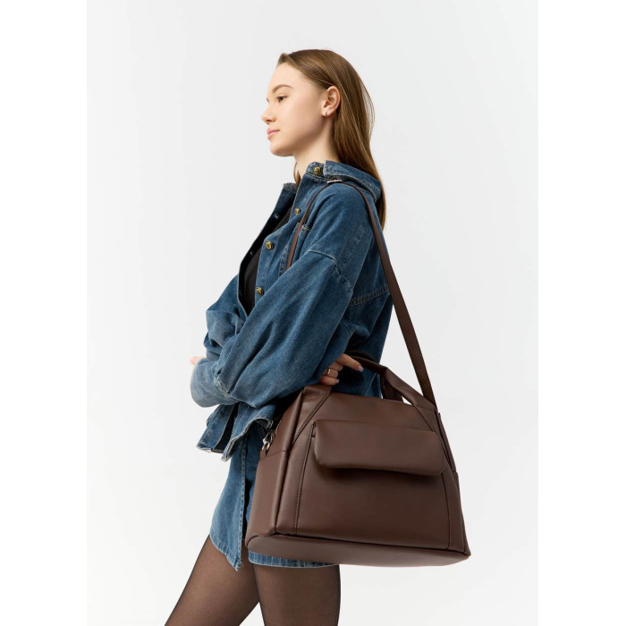 ззовні спереду сумки кишеня на магніті. Всередині сумки одне окреме відділення, в якому одна кишеня на блискавці та одна відкрита кишеня. Ззовні на спинці сумки одна кишеня на блискавці.