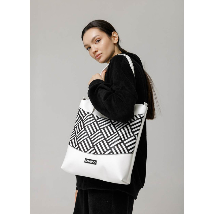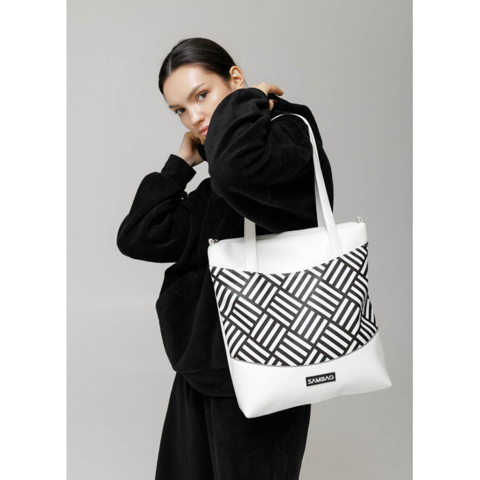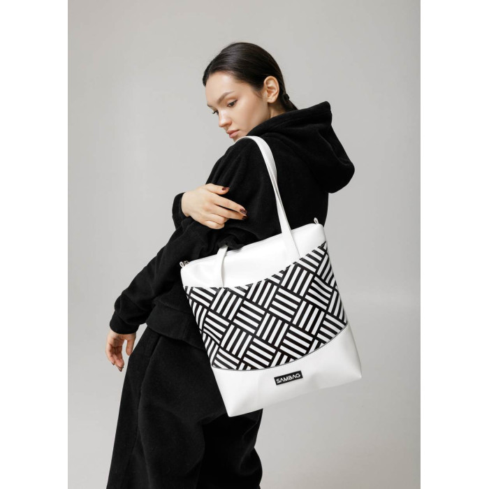 Сумка Sambag Shoper NOVA біла з принтом "StriQ"