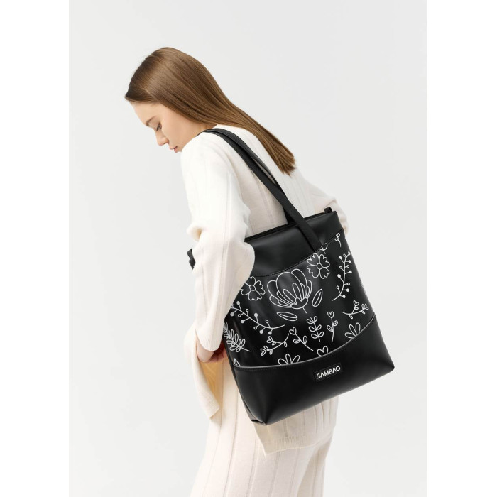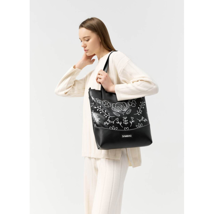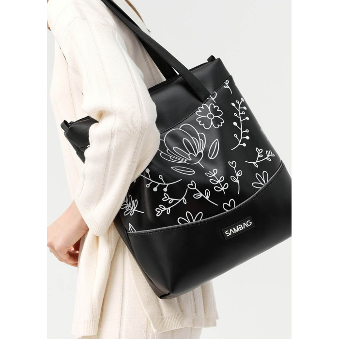 Сумка Sambag Shoper NOVA чорна з принтом "Bloom"