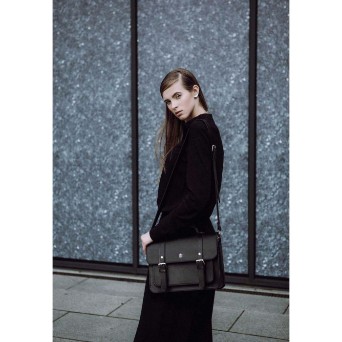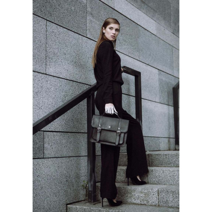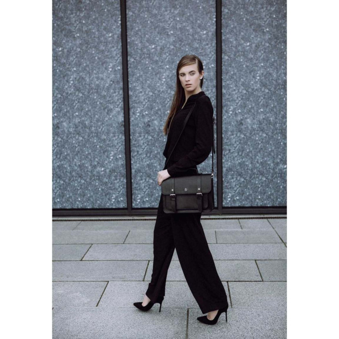 Ця модель вміщує: документи, смартфон, гаманець, ключі та інші необхідні дрібниці. Сэтчел оснащений ручкою для носіння в руках і знімним наплечним ременем.