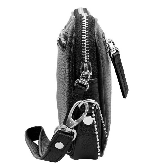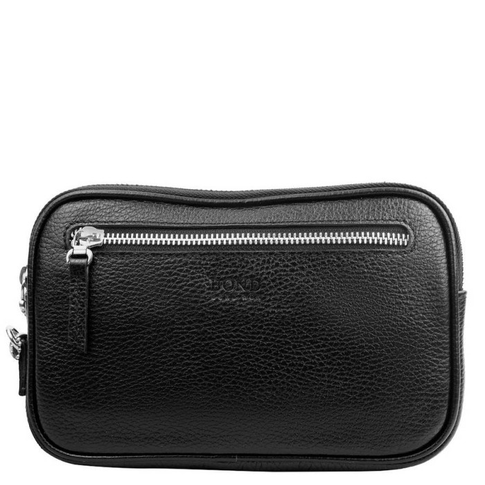 Кількість основних відділень: 1. Всередині розташована 1 прорізна кишеня на блискавці і 2 накладних кишені, призначених для зберігання мобільного телефону, різних портативних гаджетів і дрібниць. На лицьовій і тильній сторонах є 2 прорізних кишені на блискавці. У комплект до виробу додається знімний зап'ястного ремінець-петля. Аксесуар можна носити в руці і на зап'ясті. Підкладка виготовлена з щільної тканини. Матеріал: шкіра. Колір: чорний. Колір фурнітури: срібло. Розміри (X*Y*Z): 21*13,5*5 см. Модель закривається за допомогою блискавки. Документи формату А4 не поміщається у барсетку. Виріб упаковано в поліетиленовий пакет і тканинну сумку. Країна виготовлення і походження торгової марки BOND - Туреччина. Гарантія: 3 місяці.