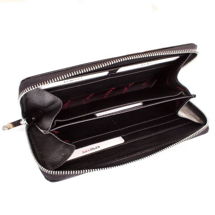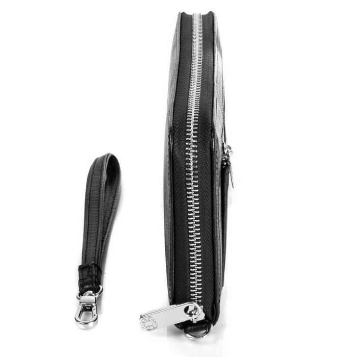 Кількість основних відділень: 2. Всередині є 8 кишені для візиток, банківських та дисконтних карток, 2 горизонтальних накладних кишені. відділення для смартфона. На зовнішній стороні є прорізна кишеня на блискавці. У комплект до моделі додається знімний зап'ястного ремінець-петля. Його довжина не регулюється і становить 22 см. Барсетка придатна до носіння в руці, на зап'ясті. Виріб має жорсткий каркас. Це означає, що воно не буде м'ятися і деформуватися в процесі використання. Підкладка виготовлена з щільної тканини. Матеріал: полірована шкіра під змію. Колір: чорний. Колір фурнітури: срібло. Зовнішні розміри: 21*12*2,5 см. Виріб закривається за допомогою блискавки. Документи формату А4 не поміщаються у виробі. Аксесуар упакований в поліетиленовий пакет, а також фірмову тканинну сумку. Країна походження торгової марки Karya - Туреччина. Гарантія: 3 місяці.