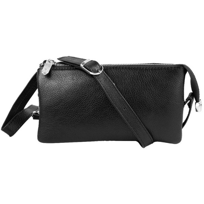 Зовнішні розміри: 21,5 х 11,5 х 5,5 (може бути ширше, якщо наповнена) см. Колір: чорний. Колір фурнітури: срібло. Матеріал виробу: шкіра. Матеріал підкладки: тканина. Кількість основних відділень: 3. Усередині є одна накладна кишеня. Одне з відділень додатково закривається на блискавку. Гарантія: 1 місяць. Сумка має знімний ремінець, довжина якого регулюється і складає максимально 141 см без урахування кріплень. Аксесуар придатний для носіння в руці, на плечі, через плече. Документи формату А4 не поміщаються в виробі. Виріб закривається за допомогою блискавки. Виріб упаковано в тканинний пакетик. Країна походження торгової марки KARYA - Туреччина.