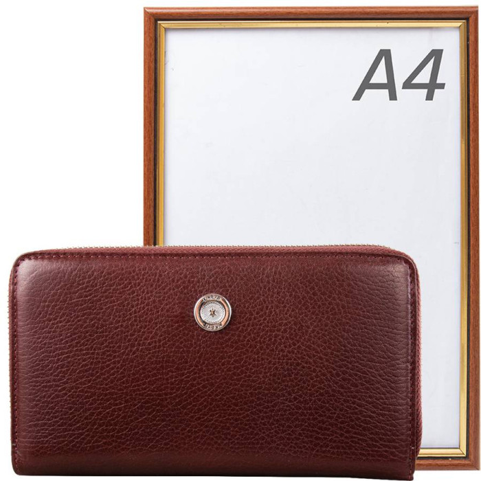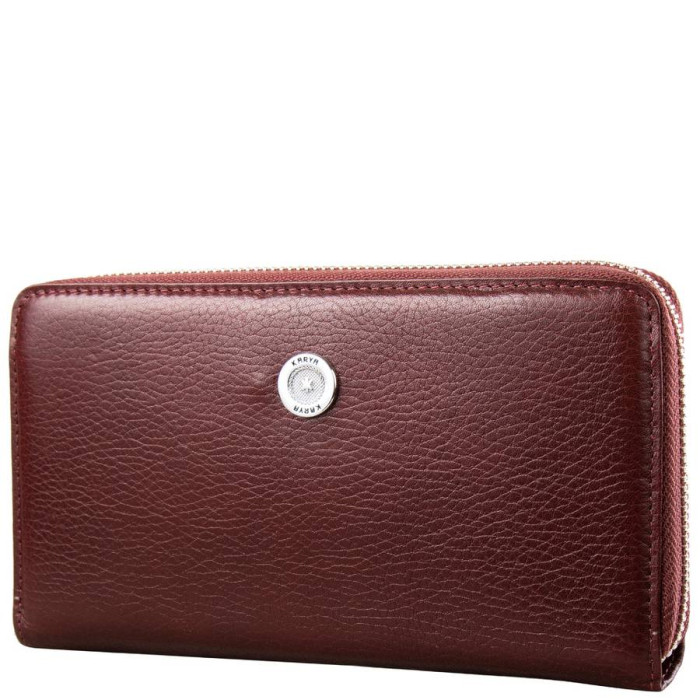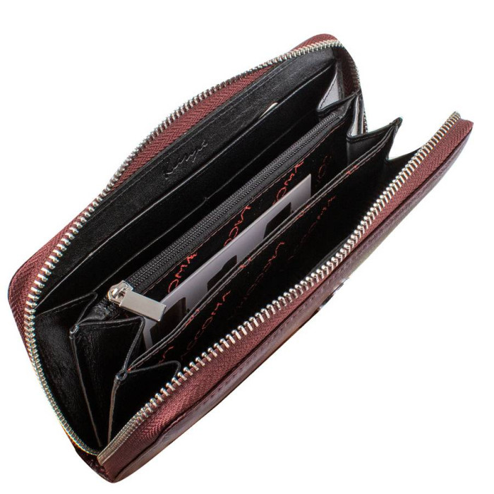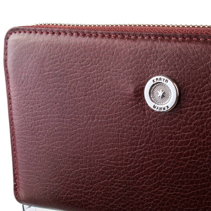 Кількість основних відділень (для купюр): 3. Кількість додаткових відділень: 3. Відділення для банківських дисконтних і візитних карток: 8. Відділення для дрібниці: 1. Кишеня-монетниця закривається за допомогою застібки-блискавки. Відділення для SIM-карт: 2. Матеріал виробу: лакована шкіра з тисненням. Колір: коричневий. Колір фурнітури: срібло. Розміри (X*Y*Z): 19*11*2 см. Аксесуар закривається за допомогою блискавки. Виріб упаковано в фірмову картонну коробку. Країна походження TM Karya - Туреччина. Гарантія: 1 місяць.