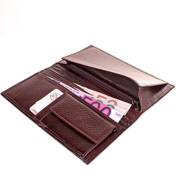 Кількість основних відділень (для купюр): 1. Додаткові відділення: 3. Відділення для візиток, банківських та дисконтних карт: 2. Відділення для дрібниці: 1. Монетниця закривається за допомогою клапана на механічній кнопці. Прорізна кишеня на блискавці: 1. Матеріал виробу: шкіра полірована. Колір: бордово-коричневий. Колір фурнітури: срібло. Розміри (X*Y*Z): 10,5 (у розкритому вигляді - 21 см)*19*1 см. Аксесуар виготовлений без застібки. Виріб упаковано в фірмову картонну коробку. Країна походження торгової марки Desisan - Туреччина. Гарантія: 1 місяць.