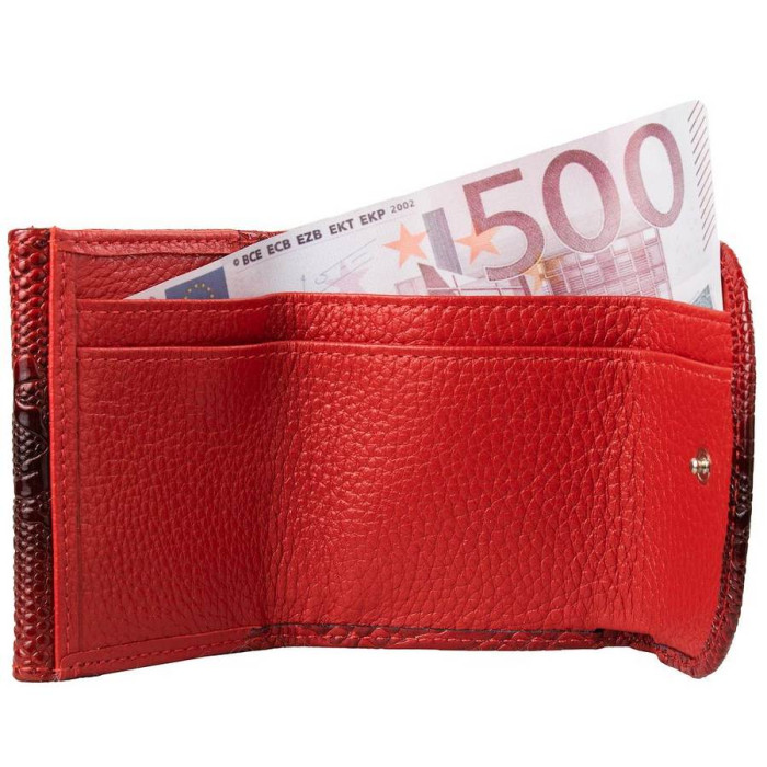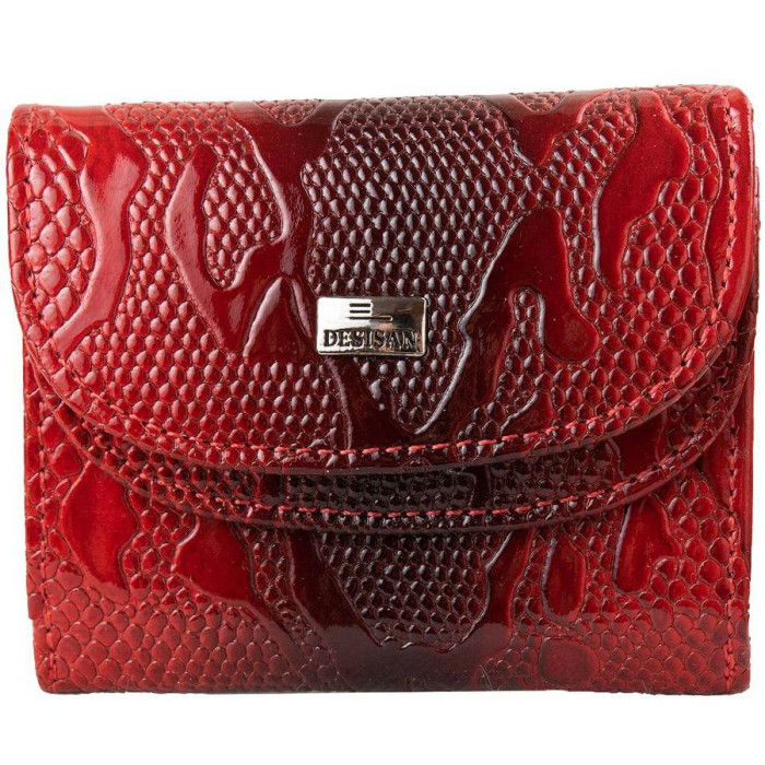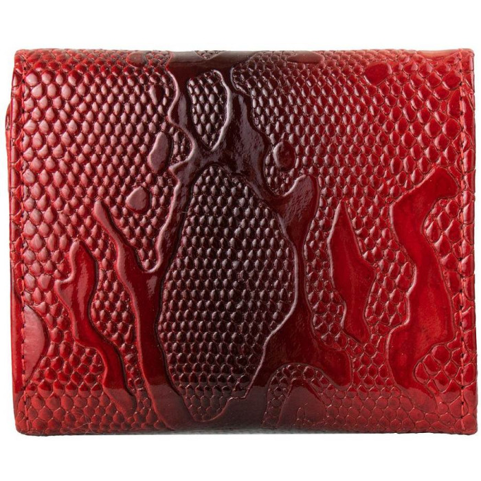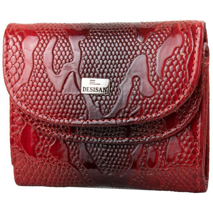 Червоний колір плавно згущується до дуже темного відтінку і забарвлення цього гаманця стає градиентно-виразною. Забарвлення стильно співвідноситься з фактурним тисненням, що імітує малюнок на шкірі рептилії. Приємний на дотик, модний гаманець-портмоне представляє модельний ряд компактних виробів з асортименту турецької торгової марки DESISAN. Аксесуар кишенькового формату, невеликої товщини вміщує купюри і монети, пару-трійку необхідних карток можна розмістити і в кишені-монетниці. Він застібається клапаном на кнопці, як і основне відділення, яке складається на зразок буклета. Першосортне якість матеріалів і виготовлення - важливий фактор при виборі повсякденного моделі. Даний гаманець купити можна в інтернет-магазині «OlaBags». Ціна шкіряного брендового аксесуара - вигідна.