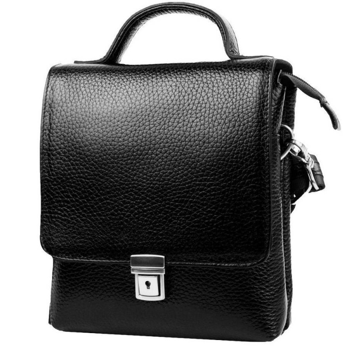 Конструкція, форма, чорний колір Цієї шкіряної борсетка налаштовують на діловий лад. Модель торгової марки DESISAN зручна в обігу. Доступ до двох відділень відкриває великий клапан на механічній засувці, зверху є щільна міцна ручка, а також в комплекті йде пристібний плечовий ремінь. На додаток до двох відсіків виріб має масу зручних кишень, в тому числі зовнішніх. Розкласти вміст з дрібних предметів можна будь-яким зручним вам способом. Брендова сумка-борсетка з першосортної натуральної шкіри оформлена лаконічно, виразними елементами образу виступають тут деталі фурнітури з яскраво-сріблястим металевим блиском. Щільний якісний матеріал добре тримає задані параметри, опрацювання кожного шва і обробка - на висоті. В інтернет-магазині trade-city.ua купити чоловічу шкіряну борсетку ви можете за вигідною ціною.