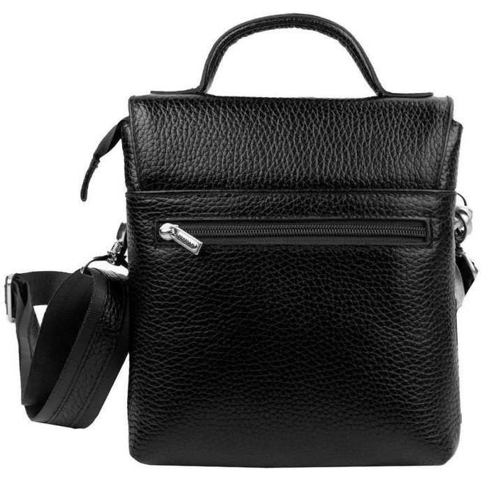 Розміри (X * Y * Z): 20 х 22 х 5 см. Сумка має плечовий ремінець регульованої довжини (максимально - 150 см). Матеріал: шкіра. Підклад виготовлена з щільної тканини. Колір: чорний. Колір фурнітури: срібло. Кількість основних відділень: 2. Всередині є кишеня-перегородка, кишеня на блискавці, накладна кишеня і органайзер для ручок. На лицьовій стороні є кишеня. На тильній стороні є кишеня на блискавці. Аксесуар можна носити, на плечі, через плече. Модель закривати за допомогою клапана на механічній застібці. Гарантія: 3 місяці. Документи формату А4 не поміщаються в сумку. Країна походження торгової марки DESISAN-Туреччина.