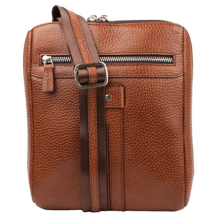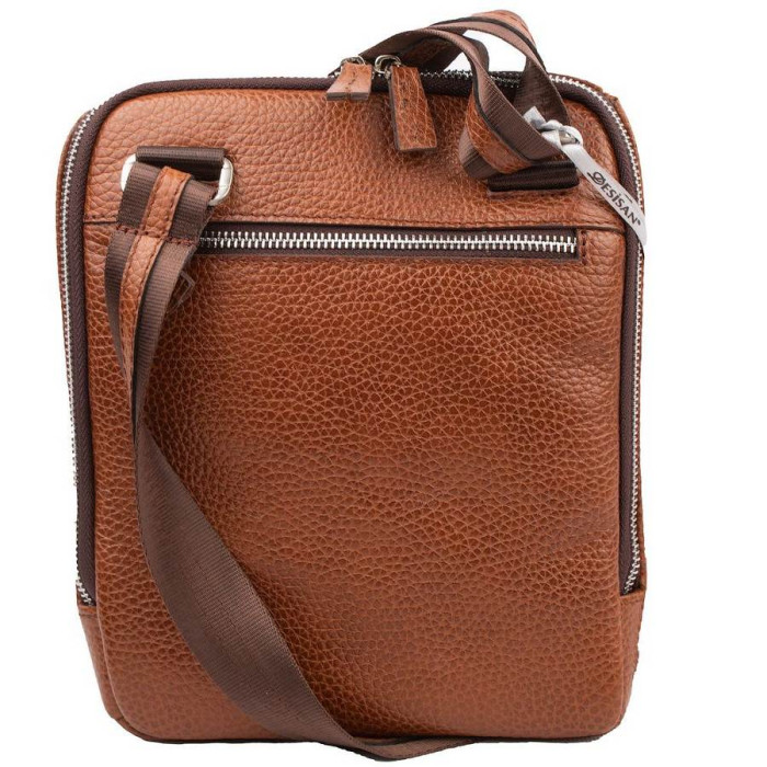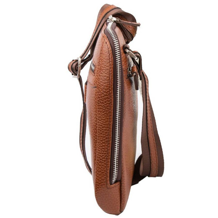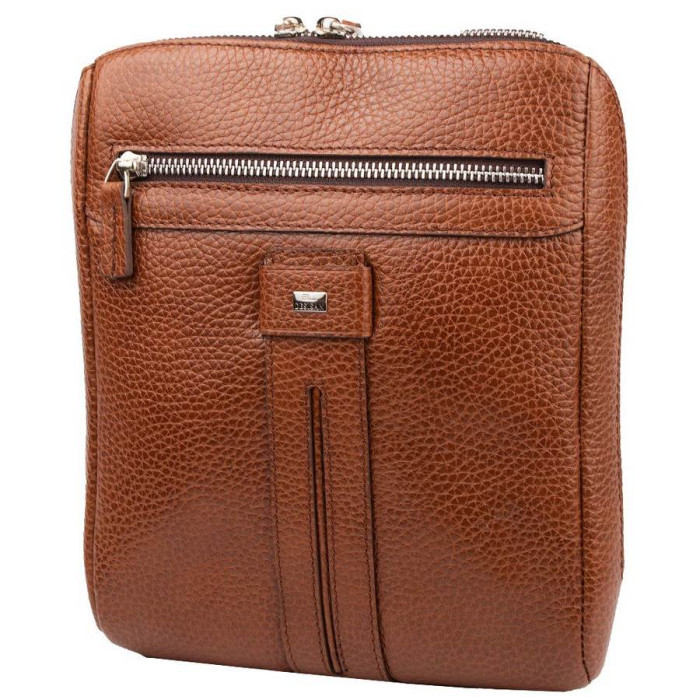 Розміри (X * Y * Z): 20 х 25 х 3 см. Сумка має плечовий ремінець регульованої довжини (максимально - 135 см). Матеріал: шкіра. Підкладка виготовлена ??з щільної тканини. Колір: рудий (коричневий). Колір фурнітури: срібло. Кількість основних відділень: 2. Аксесуар має одна накладна кишенька і кишеня-перегородка на блискавці. На лицьовій і тильній сторонах є по кишені на блискавці. Аксесуар можна носити , на плечі, через плече. Модель закривається за допомогою блискавки. Гарантія: 3 місяці. Документи формату А4 не поміщаються в сумку. Країна походження торгової марки DESISAN - Туреччина.