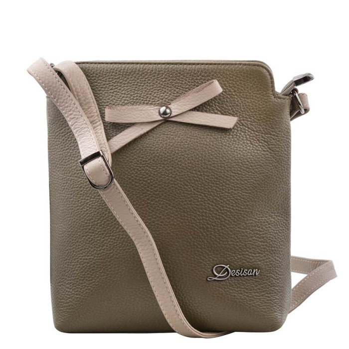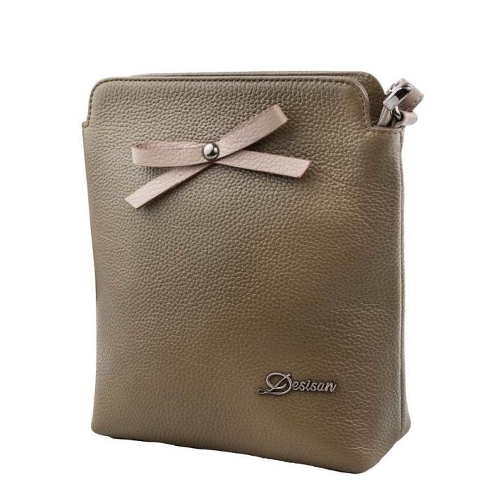 Кількість основних відділень: 2. Всередині аксесуар має одну прорізну кишеню на блискавці, накладна кишеня, призначена для зберігання мобільного телефону, різних портативних гаджетів і дрібниць, а також кишеня-перегородка на блискавці. На тильній стороні сумки розташована прорізна кишеня на блискавці. Сумка має плечовий ремінь регульованої довжини, максимально - 139 см. Аксесуар можна носити на плечі, через плече. Має щільне дно. Підкладка виготовлена з щільної тканини. Матеріал: шкіра. Колір: оливковий. Колір фурнітури: чорне срібло. Розміри (X*Y*Z): 19 (замір по дну)*23*5,5 см. Модель закривається за допомогою блискавки. Документи формату А4 не поміщаються в сумку. Виріб упаковано в поліетиленовий пакет. Країна виготовлення, а також походження торгової марки Desisan - Туреччина. Гарантія: 3 місяці.