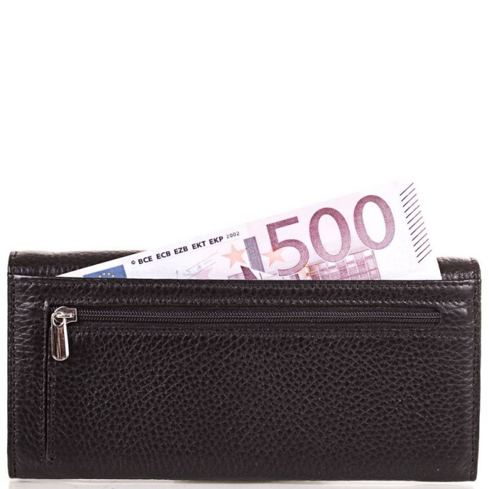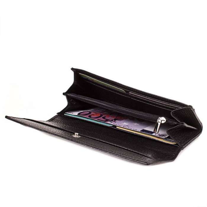 Кількість основних відділень (для купюр): 4. Додаткові відділення: 2. Відділення для візиток, банківських та дисконтних карток: 10. Відділення для дрібниці: 1. Монетниця закривається за допомогою блискавки. На тильній стороні гаманець має один великий горизонтальний накладної кишені і один прорізна кишеня на блискавці.. Матеріал виробу: шкіра флотар. Колір: чорний. Колір фурнітури: срібло. Розміри (X*Y*Z): 19*9*2,9 см. Аксесуар закривається за допомогою клапана і механічної кнопки. Виріб упаковано в фірмову картонну коробку. Країна походження торгової марки Canpellini - Туреччина. Гарантія: 1 місяць.