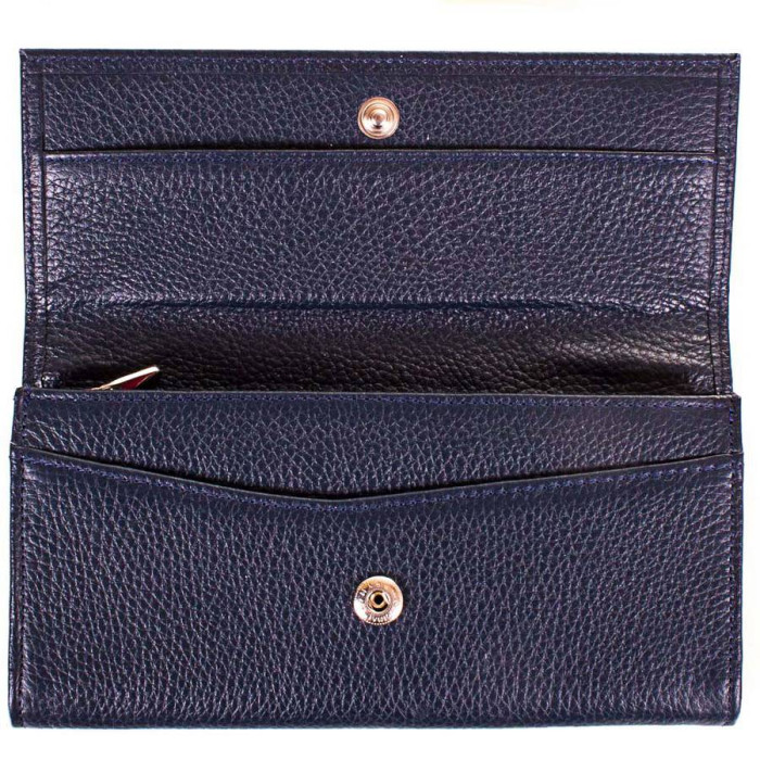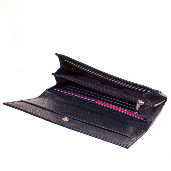 Кількість основних відділень (для купюр): 4. Додаткові відділення: 2. Відділення для візиток, банківських та дисконтних карток: 10. Відділення для дрібниці: 1. Монетниця закривається за допомогою блискавки. На тильній стороні гаманець має один великий горизонтальний накладної кишені і один прорізна кишеня на блискавці.. Матеріал виробу: шкіра флотар. Колір: морський синій. Колір фурнітури: срібло. Розміри (X*Y*Z): 19*9*2,9 см. Аксесуар закривається за допомогою клапана і механічної кнопки. Виріб упаковано в фірмову картонну коробку. Країна походження торгової марки Canpellini - Туреччина. Гарантія: 1 місяць.