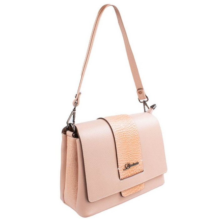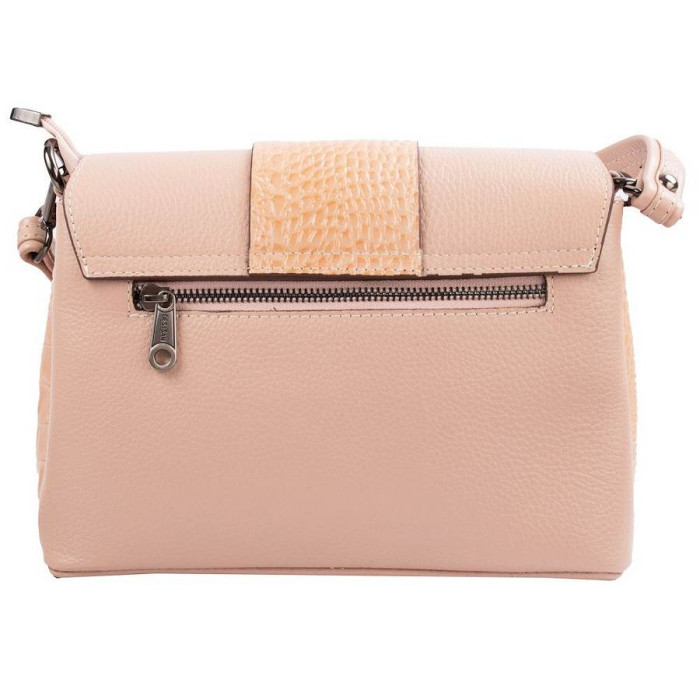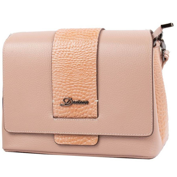 Нежный розово-бежевый оттенок, созвучные тона и разные фактуры, аккуратная форма – кожаная брендовая сумка-клатч в таком исполнении найдёт достойное место в женском гардеробе. Аксессуар из ассортимента торговой марки DESISAN (Туреччина) безупречен по форме и удобен в устройстве. Три отделения позволяют рационально использовать небольшой объём. Пристежные ремень и ручка помогут легко определиться с подходящим способом ношения для различных ситуаций. Дно изделия устойчивое, поверхности гладкие, боковые стороны и скруглённые уголки передают женственность модели. Большой клапан с декоративным хлястиком добавляет в образ чуточку строгости, которая так уместна наравне с мягкостью цветового решения. В нашем интернет-магазине купить женскую кожаную сумку Вы можете уже сегодня. Цена – выгодная.