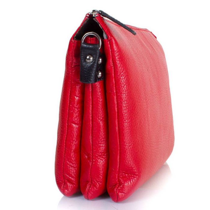 Кількість основних відділень: 3. Сумка має накладну кишеню для зберігання мобільного телефону, і 2 кишені-перегородки. Виріб має знімний вузький ремінь,довжина якого регулюється металевою пряжкою (максимально 140 см). Аксесуар пргоден для носіння через плече або в руці. Матеріал підкладки: щільна тканина. Матеріал виробу: шкіра флотар. Колір: червоний, чорний. Колір фурнітури: чорне срібло. Розміри (X*Y*Z): 24*22,5*10 см. Сумка закривається за допомогою застібки-блискавки. Документи формату А4 не поміщаються у аксесуар. Виріб упаковано в поліетиленовий пакет. Країна походження ТМ Desisan - Туреччина. Гарантія: 3 місяці.