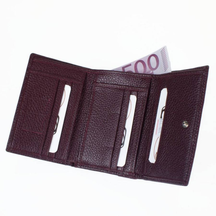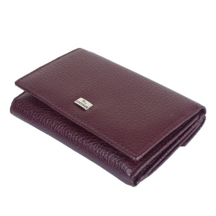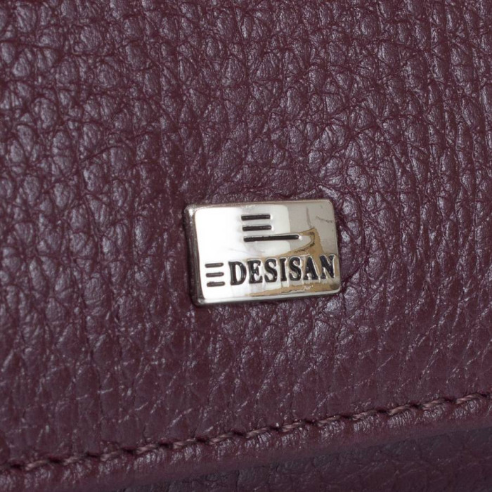 Кількість основних відділень (для купюр): 2. Відділення для візиток, банківських та дисконтних карток: 8. Відділення для SIM-карт: 2. Додаткові відділення: 5. Відділення для дрібниці: 1. Кишеня-монетниця закривається за допомогою клапана і механічної кнопки. Матеріал виробу: шкіра. Колір: бордово-коричневий. Колір фурнітури: срібло. Розміри (X*Y*Z): 12,6*9*2,5 см. Аксесуар закривається за допомогою механічної кнопки. Виріб упаковано в фірмову картонну коробку. Країна походження ТМ Desisan - Туреччина. Гарантія: 1 місяць.